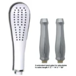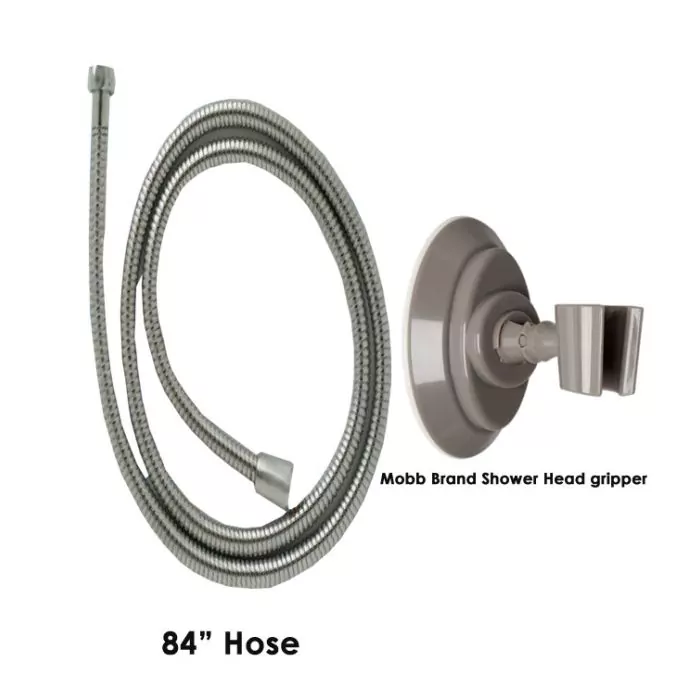 The Adjustable Shower Wand by MOBB was designed for someone who is independent with limited reach or for anyone who has a caregiver assisting them with daily hygiene. It features an extra-long 84″ tangle-free hose, two hand grip extenders, adjustable water pressure valve, diverter valve and suction shower head gripper.