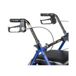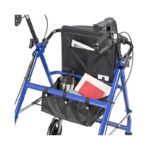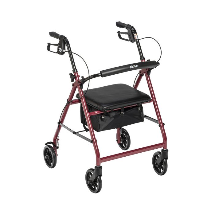 The Aluminum Rollator 6″ Casters by Drive Medical is a lightweight rollator, weighing only 14 lbs, with fold up and removable back support, a comfortable padded seat, loop locks, serrated brakes and adjustable ergonomic handles.