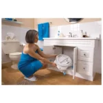 The Aquasense Ergonomic Folding Bath Seat by Drive Medical wins “best of category” for its practicality, sturdiness and comfort and provides support for individuals who need to sit down while having a bath or a shower. This seat features adjustable height, textured surface, flex-comfort backrest, built-in side handles, angled rubber tips, drainage holes. It also folds flat for easy storage.