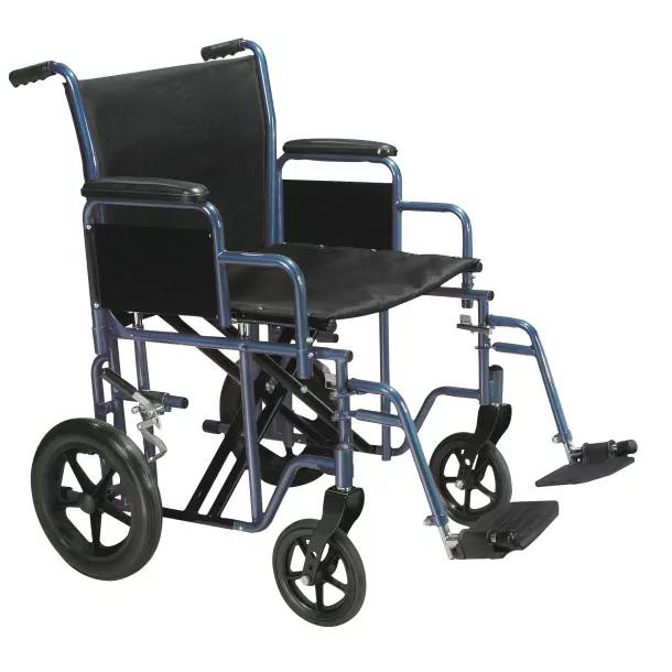 The Bariatric Steel Transport Chair offers variety as it is available in in 20″ seat width with red or blue frame, as well as 22″ seat width which comes in red, blue or silver vein frame finish.