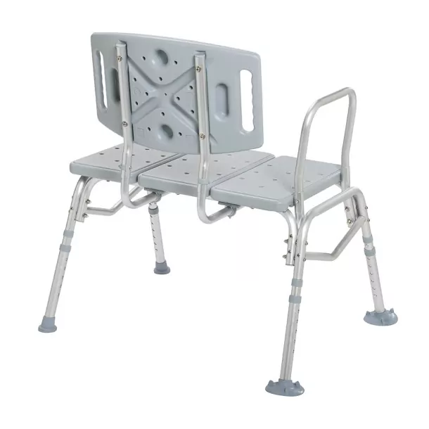 The Bariatric Transfer Bench by Drive Medical features a durable blow-molded adjustable plastic bench and backrest, extra large locking suction cups and a new and improved “A” frame construction for added stability.