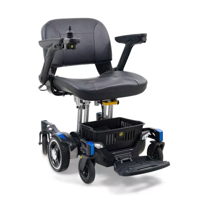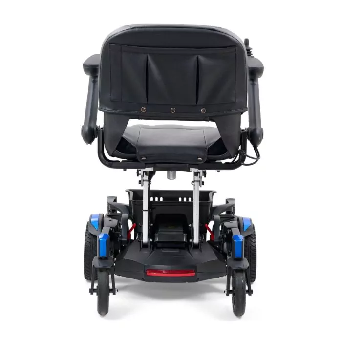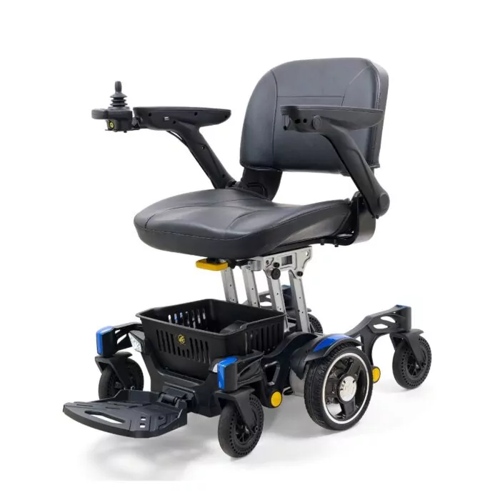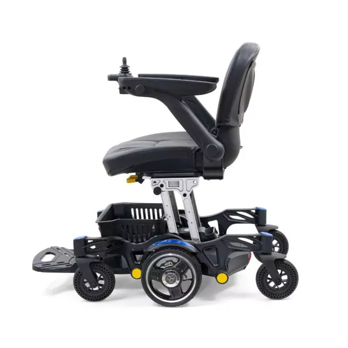 The Golden Buzzaround CarryOn folding power wheelchair is the lightest center wheel drive chair in its class, offering superior portability. Weighing only 46 lbs and folding to a slim 10”, it’s easy to store and transport.