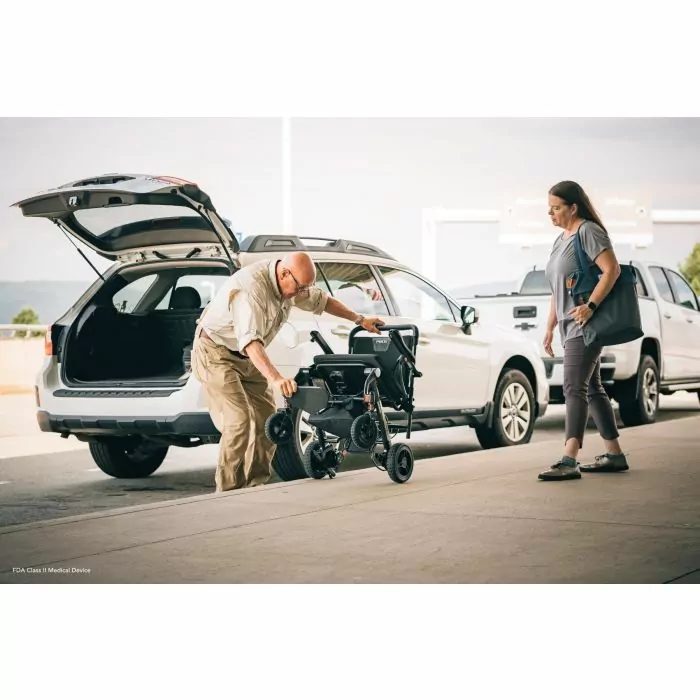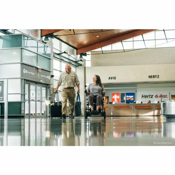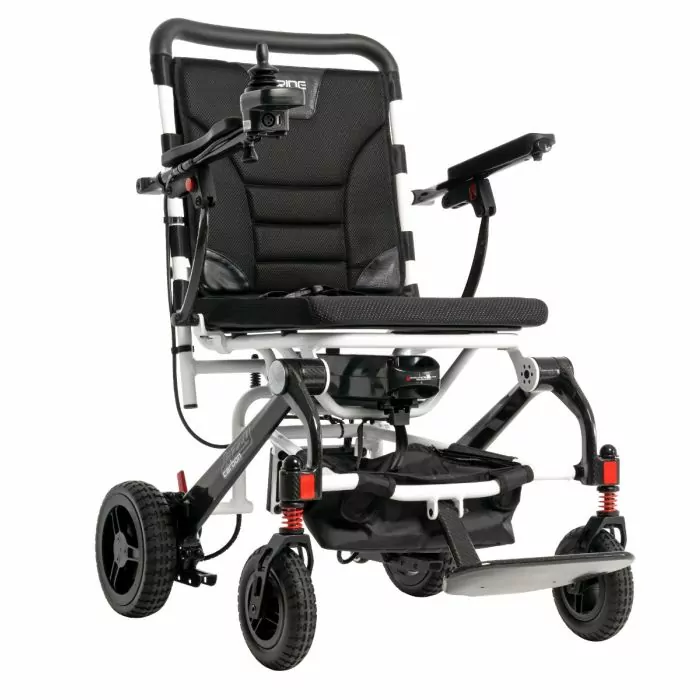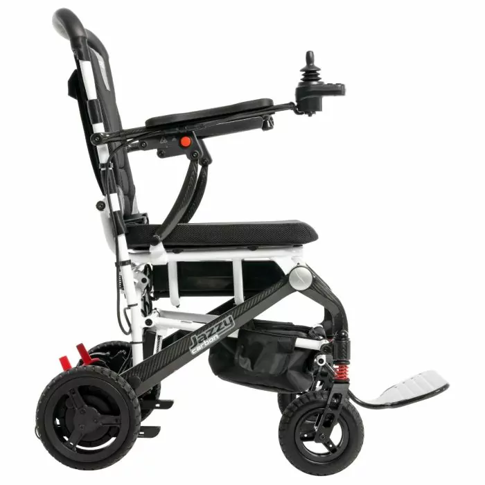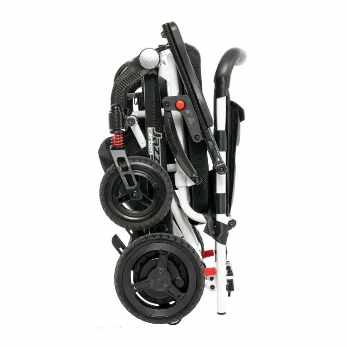 The Jazzy Carbon Folding Power Wheelchair by Pride Mobility is your ideal travel companion. Weighing only 39 lbs (43.5 lbs with batteries), the Jazzy Carbon offers industry-leading performance and quality. It’s carbon fiber frame is lightweight and sturdy – perfect for breezing through airport security in comfort!