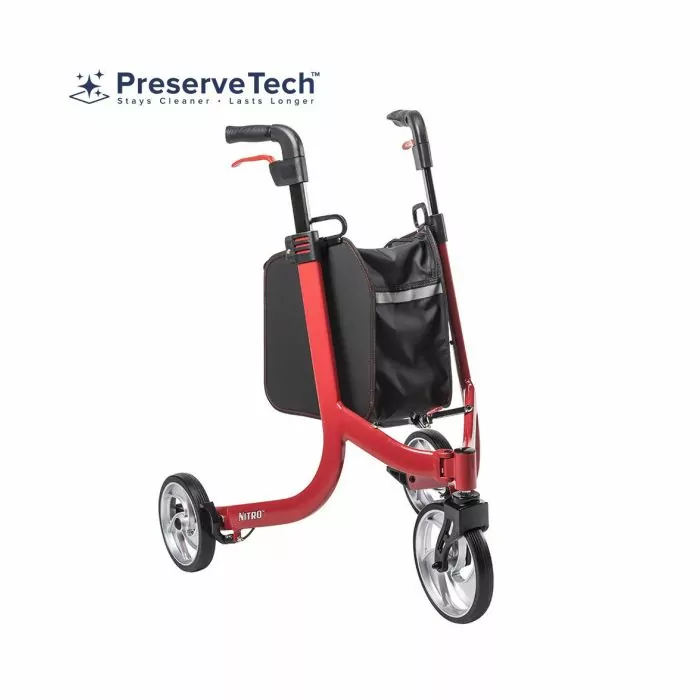The Nitro 3 Wheel Rollator includes a large, removable pouch and comes pre-assembled.