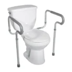 The Toilet Safety Frame with Padded Arms by Drive Medical is ideal for individuals who require help when sitting down or standing up from their toilets. Its height and width are both adjustable and its padded waterfall armrests provide additional comfort and support.