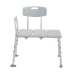 The Transfer Tub Bench by Drive Medical features a durable blow-molded adjustable plastic bench and backrest, extra large locking suction cups and a new and improved “A” frame construction for added stability. This bench is easy to accommodate in any bathroom due to its tool-free reversible backrest.